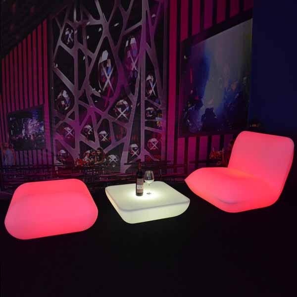 This LED waterproof remote control sofa led sofa for home is our new design. We choose plastic PE material for it is durable, easy to clean and waterproof. So it can be used both indoor or outdoor without any worry. Equipped with a DC adapter, 4-6 hours is enough to get it fully charged. Then remove the plug, it will light up 8-12 hours continuously. You can put it in your garden,home, bar,nightclub,hotel,shop,etc. A remote controller in hand, you can control all the led sofa or other furniture within 15 meters. The RGB multi color will definitely create a romantic atmosphere and light up your life.
