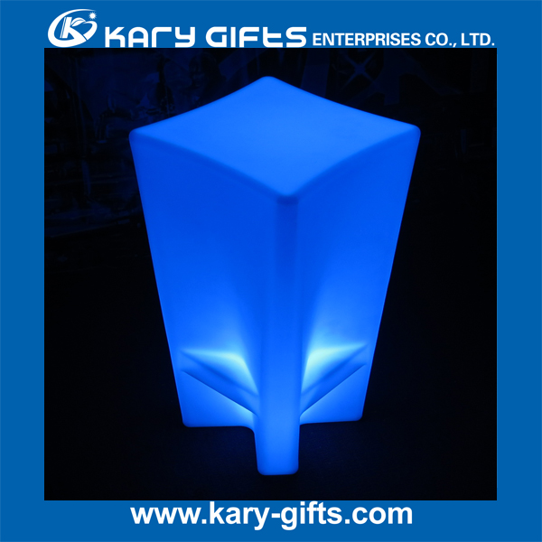 This PE Plastic New Designs LED Bar Stool RGB 16 Kinds Colors Bar Chair KC-3866, is made up by PE material,durable use for 3~5 years. Powered by rechargeable lithium batteries loaded in the table, with DC adaptor to charge conveniently. The led lights are RGB 5050 led light, being in good quality and with bright colorful light. The PE material is durable enough to bear glass, books and other things. And it's very convenient to use with remote controller, by which 16 colors are changed and the brightness is adjusted, up or down.